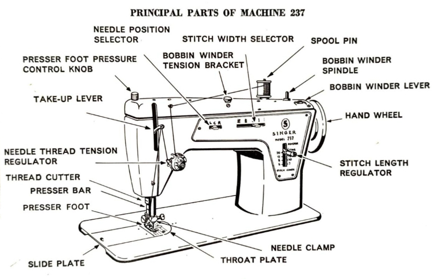Second, if you didn’t put the needle in the machine you’re using, replace it. Bent, dull and otherwise damaged needles are a frequent cause of missed stitches and other malfunctions, so start fresh. Keep that in mind as you sew, as well. The Singer 237 uses standard domestic machine needles, known as 15 x 1 or HAx1 or 130/705 H. Many are simply marked “Universal.”